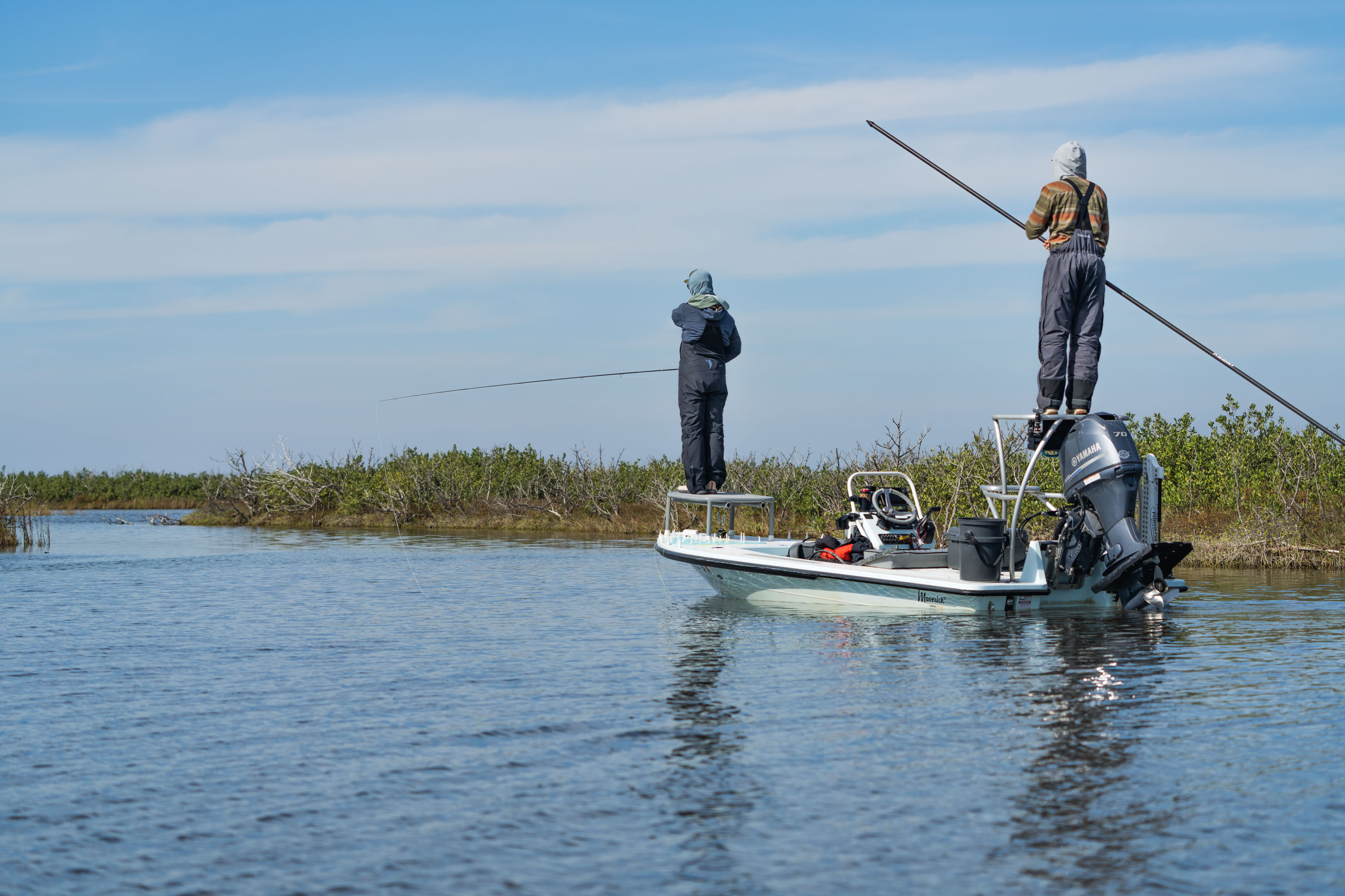 Late next spring — June 1-8, 2027 — we're hosting seven anglers for seven nights and six days of guided fly fishing for these unruly inshore game fish that will test any fly-caster's mettle. From the uber-comfortable confines of Bay Flats Lodge, we'll launch aboard flats skiffs and explore the wild waters of this rich ecosystem. In addition to redfish, anglers can target speckled trout, black drum, the wily sheepshead, and, on warm, calm mornings in the barrier island cuts, there's a chance to tie into truly big jack crevalle in the 40-pound range. This latter fishery is a bit of a wildcard, but we've planned our hosted trip around the ideal moonphase for these pelagic predators — if they're around, and you're willing to chase them, there's a chance we can make it happen.