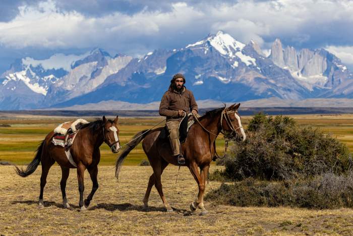 LODGING: Initially constructed almost 70 years ago as a gaucho’s cabin, perched behind a small hillside overlooking the Torres del Paine massif and Sierra Baguales, El Ultimo Puesto Lodge is steeped in history. Wood-burning stoves warm this inviting and cozy space, adorned with hardwood floors and hand-hewn solid wood doors, both built from timber harvested from nearby Lenga forests. For the last several decades, the cabin has been utilized to host equestrians, hosting as many as 10 riders at any given time. Today, the updated and converted cabin — now a small and intimate lodge — is the exclusive domain of no more than four guests per week.