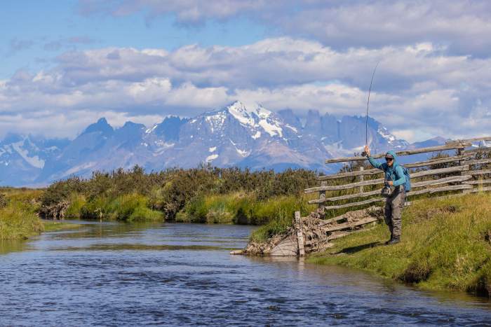 Anglers who love fishing flies like Fat Alberts, Chubby Chernobyls and other beetle and grasshopper imitations love this sun-soaked section, where brown trout sit in the shade lines created by the river’s steep cutbanks, ready to ambush big bugs that splash down on the water’s surface. The always-there, towering views of the Paine massif don’t hurt, either.