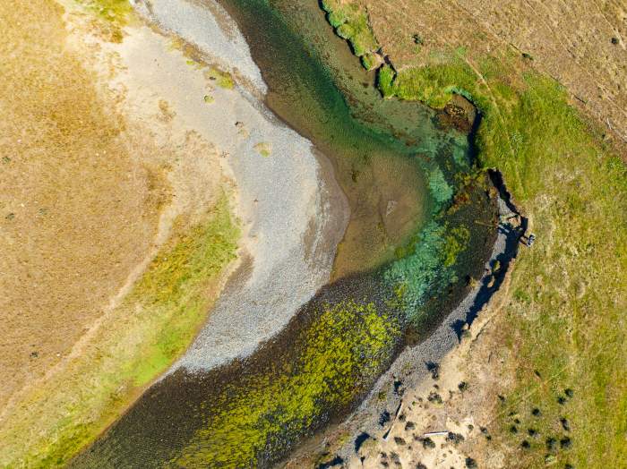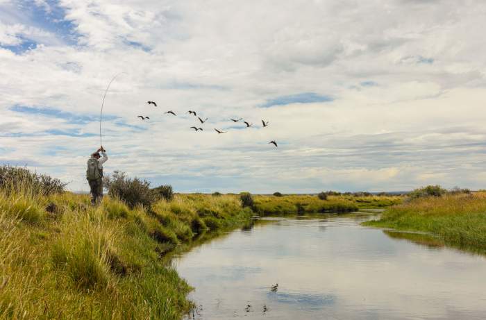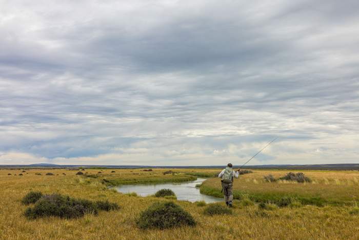 Fly fishing at El Ultimo Puesto is exclusively a walk-and-wade endeavor—one in which dry fly fishing is the primary (and often, the only) focus. Each day anglers depart from the lodge to explore 20 miles of private spring creek water, 15 private miles of freestone river shared only with the neighboring estancia, as well as other private creeks, lagunas, and additional river miles located within the ranch. Wading throughout the estancia is easy, with guides able to transport clients directly to the creek and river by vehicle.