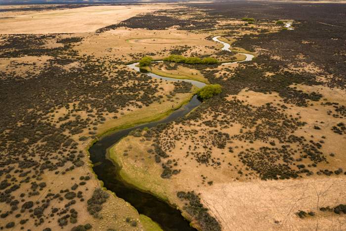 Our spring creek is special. Exclusively the domain of brown trout which seem to almost always be looking up, it features some of the finest dry-fly and sight fishing found anywhere in Patagonia. For much of its course, the creek meanders wildly, its oxbows and bends almost touching each other as it winds its way through the pampa — offering anglers an almost endless conveyor belt of corner pools, cutbanks, riffles, runs, and flats. An average spring creek brown trout is 20 inches in length, with catches up to 24 inches common and specimens as large as 26 inches swimming in its waters.